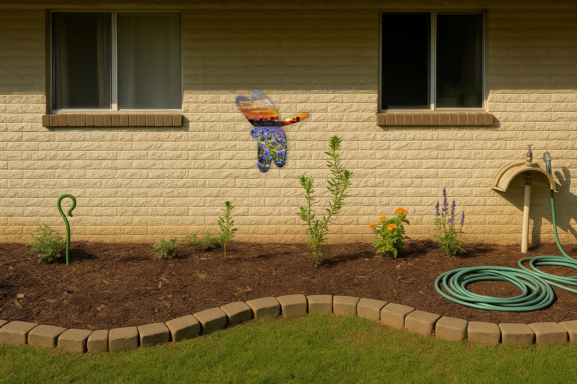 Originally fluttering through our handcrafted wooden puzzles as a whimsical StoryPiece, Ember has grown into a full-sized StoryGarden Critter—ready to perch on fences, drift above planters, or add a spark of wonder to your wall.